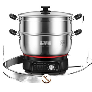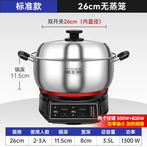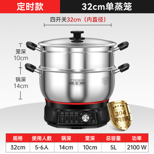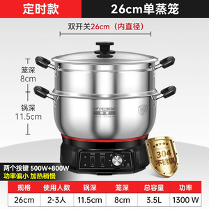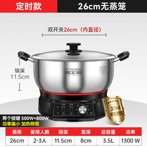 半球 不锈钢电炒锅多功能家用炒菜锅蒸煮一体式定时款电热火锅