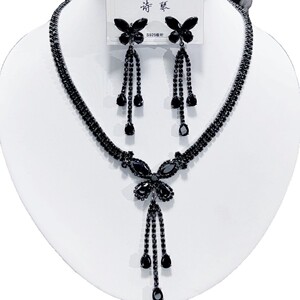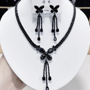 锆石蝴蝶奢华项链耳环气质百搭佩戴裙装时尚 流苏吊坠轻奢项饰