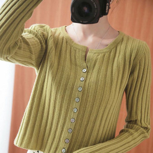 毛衣上衣长袖针织开衫女外搭显瘦高腰圆领外套潮软短款2025秋冬糯