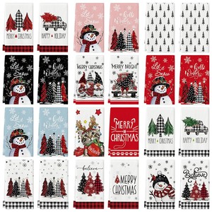 跨境希音temu爆款圣诞节厨房洗碗巾圣诞雪人餐桌吸水毛巾节日装饰