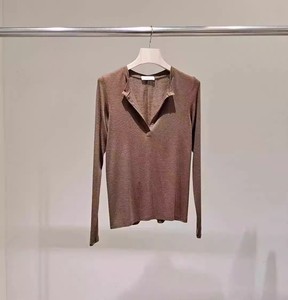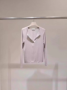 现h韩国东大门statement早秋亨利领条纹长袖T恤女士上衣打底衫
