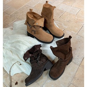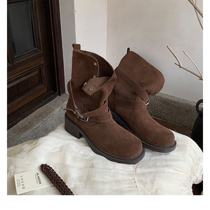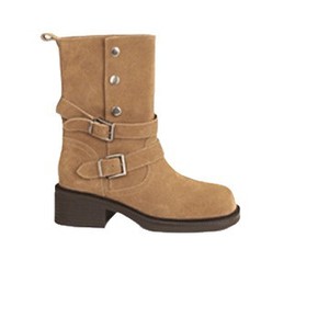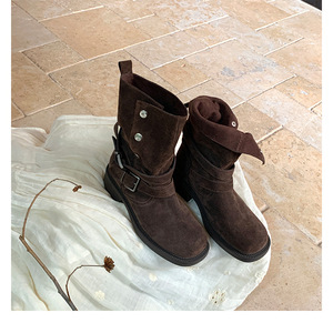 牛皮现货~莫宁顿厚底增高美拉德翻折两穿扣带牛反绒中筒靴女秋冬