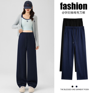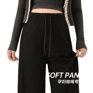 孕妇裤子秋季外穿潮妈新款仿牛仔阔腿裤小个子长裤不勒肚子春秋装