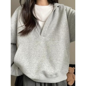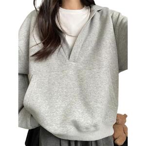 美式复古大V领连帽卫衣女秋冬2025新款松弛感慵懒风oversize外套