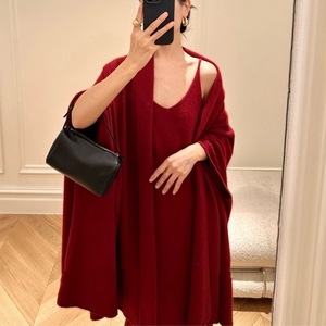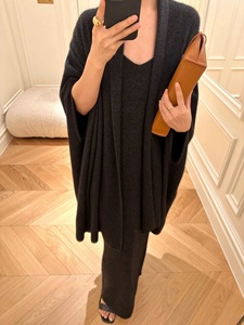秋冬气质吊带连衣裙斗篷披肩毛衣两件套女跨境外贸欧洲站针织套装