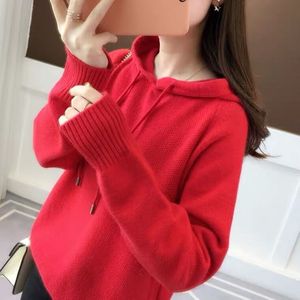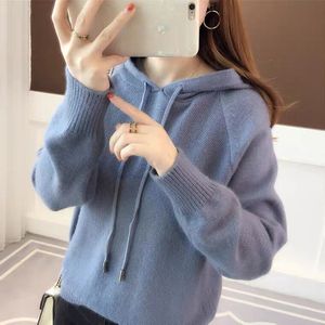 大码连帽卫衣女2025秋冬新款长袖宽松百搭针织衫纯色上衣打底衫女