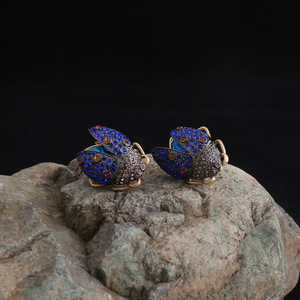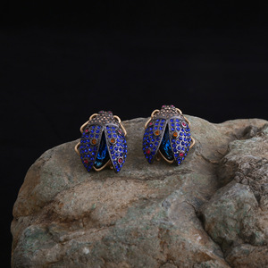 复古中古风镶钻瓢虫耳钉卡通昆虫轻奢设计感银针耳环女士气质耳饰