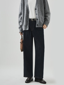 APO女装|跨境女士弯刀牛仔裤秋季设计高级感宽松显瘦半松紧腰长裤