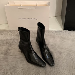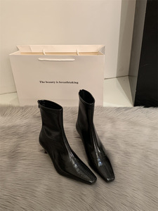 2025秋冬新款百搭法式小踝靴方头细跟瘦瘦靴简约气质猫跟短靴