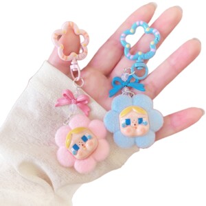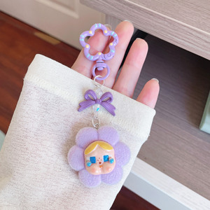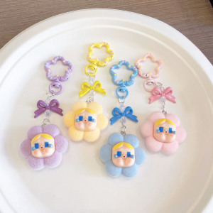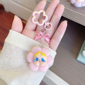 卡通植绒哭娃钥匙扣小花花可爱挂件潮玩公仔少女心包包精致挂饰品