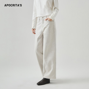 APO女装|跨境休闲裤女秋季新款高级感高腰显瘦宽松直筒半松紧长裤