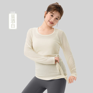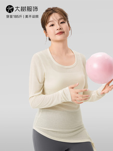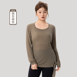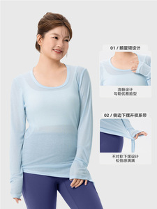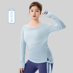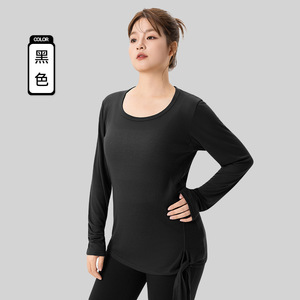 大码运动罩衫女侧开叉修身显瘦t恤胖mm薄款微透普拉提长袖瑜伽服