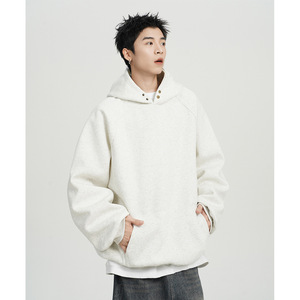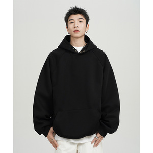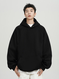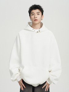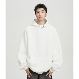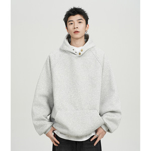 500G重磅纽扣连帽卫衣男春秋款潮牌宽松休闲纯色百搭美式帽衫外套