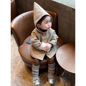 韩国童装2025秋冬新款可爱浅驼色呢大衣男女童帽毛呢外套开衫