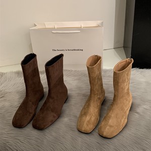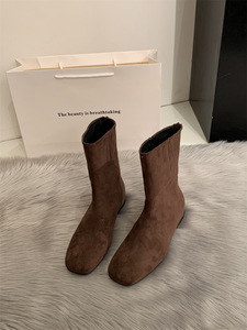 复古洋气感绒面短靴女内增高显脚瘦瘦时装靴2025新款春秋单靴