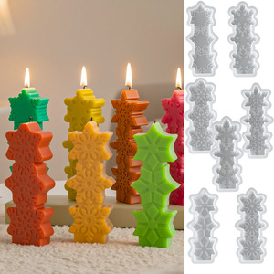 跨境diy圣诞节三连多款雪花蜡烛硅胶模具 树脂石膏摆件现货批发