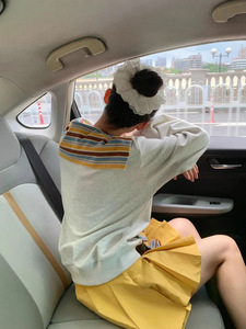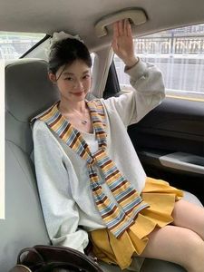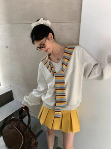 韩系V领条纹披肩假两件卫衣女秋季设计感小众宽松休闲长袖上衣ins