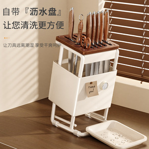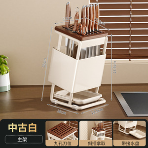 中古风斜插刀置物家用多功能厨房刀具一体纳台面沥水高颜值刀座