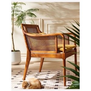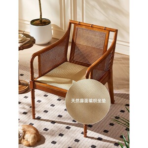中式复古椅子美式单人沙发椅阳台家用客厅主人椅藤椅仿古休闲椅子