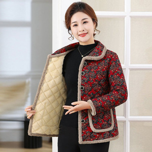 奶奶冬装棉衣翻领碎花外套妈妈装冬季加绒加厚棉服老太太短款棉袄