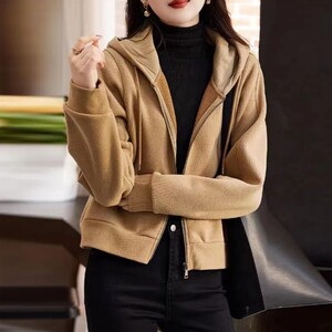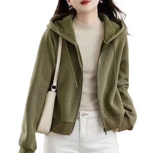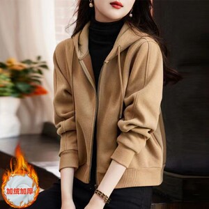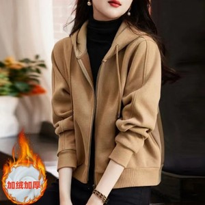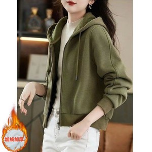 气质显瘦连帽加绒加厚卫衣女新款开衫拉链纯色百搭潮流减龄外套潮