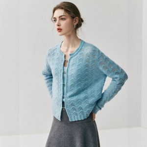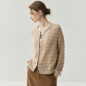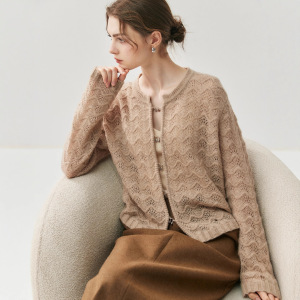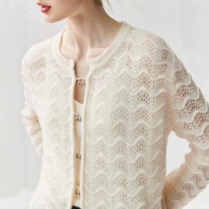 云感软糯真丝山羊绒开衫女亲肤镂空外套2025秋冬新款圆领系扣毛衣