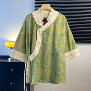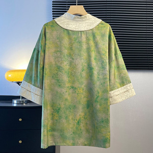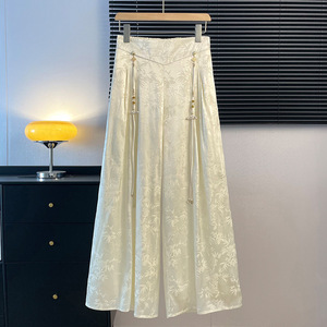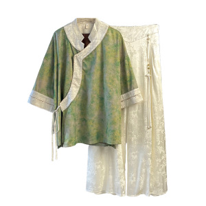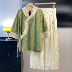 好质量中式唐装复古斜襟立领拼接汉服上衣搭配重工提花半身裙套装