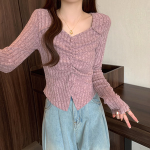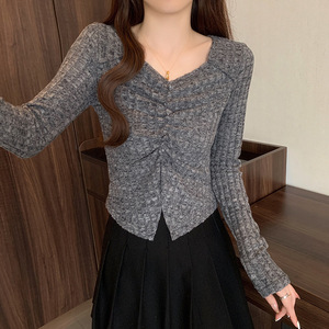 2025秋装新款胖mm大码女折皱显柔百搭减龄打底T恤上衣