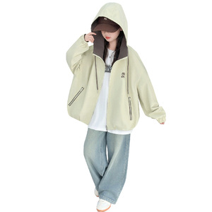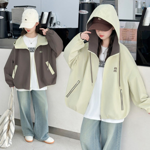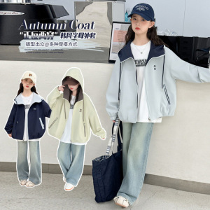 女童春秋款外套2025新款女大童洋气爱心连帽长袖上衣儿童秋装夹克
