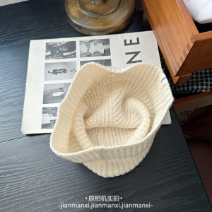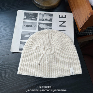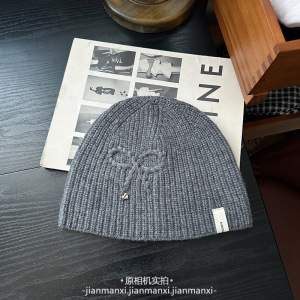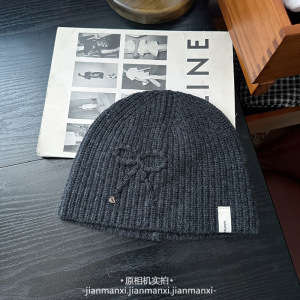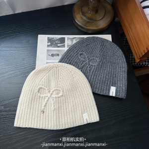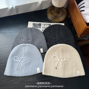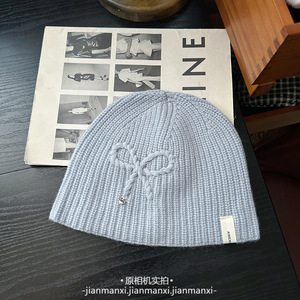 全羊毛韩版蝴蝶结金属爱心针织毛线帽女秋冬保暖时尚显脸小帽子