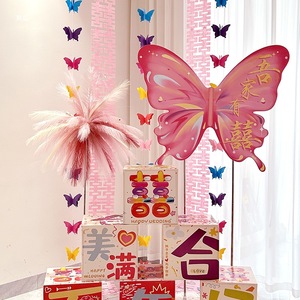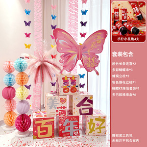 多巴胺婚房布置套装粉色结婚装饰喜字落地摆件彩色堆堆盒女方客厅