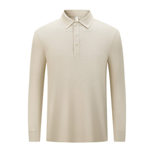 男士高级感无痕马球衫白色翻领工作服纯色涤棉运动长袖polo衫定制