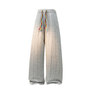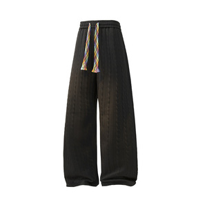 新款直筒阔腿立体花纹休闲裤男秋冬纯宽松百搭卫裤运动裤-