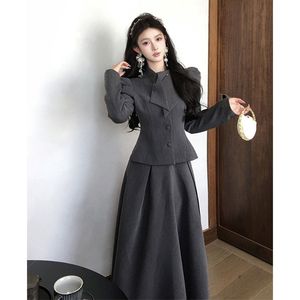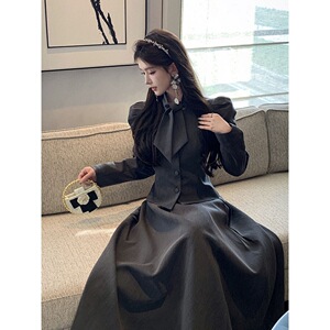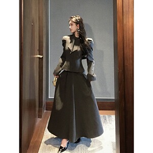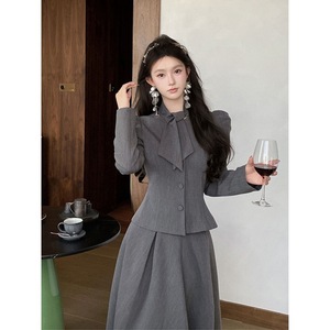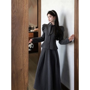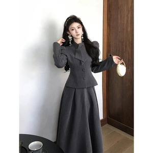 法式千金风套装女感单排扣长袖西装外套高腰长裙子两件套秋装