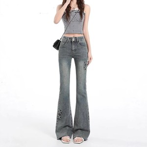 蝴蝶结毛边微喇牛仔裤女2025春秋新款高腰修身显瘦百搭马蹄喇叭裤