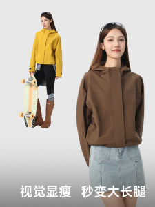 2025秋新款防水国标冲锋衣女时尚短款户外休闲小个子宽松耐磨外套