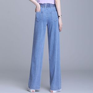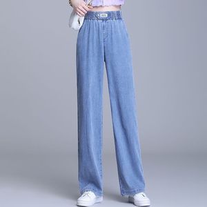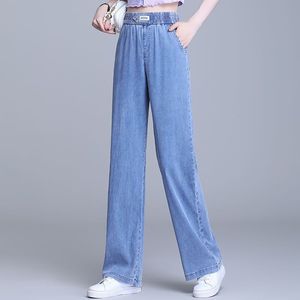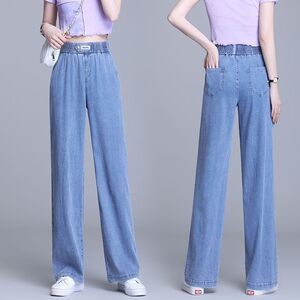 天丝牛仔阔腿裤女高腰垂感夏季薄款新款宽松显瘦天丝休闲直筒裤子
