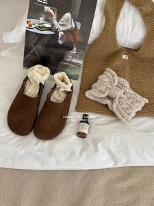 厚底真皮勃肯鞋女鞋子韩版懒惰风牛皮加绒外穿穆勒鞋全包博肯鞋