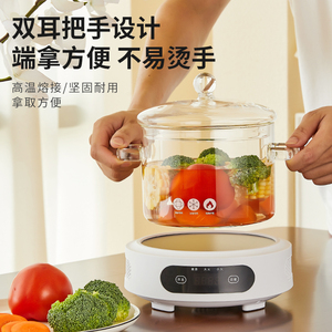玻璃煲(双耳小号-透明色)1.3L+1500w智能白色电陶炉