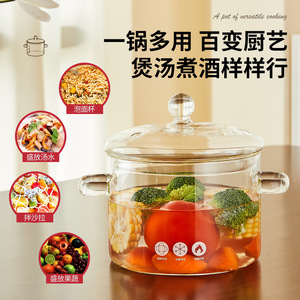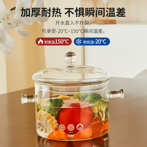 工厂直发大容量养生锅耐高温泡面锅家用煲汤锅带盖炖锅双耳玻璃锅