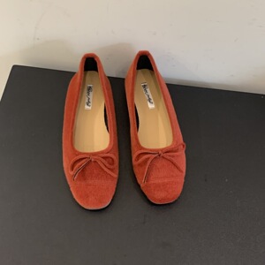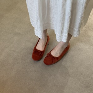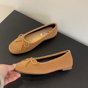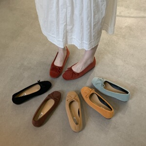 法式复古软底单鞋女鞋子2025新款秋季韩版平底鞋红色蝴蝶结芭蕾鞋