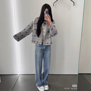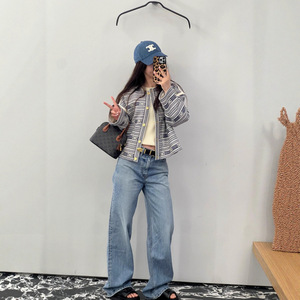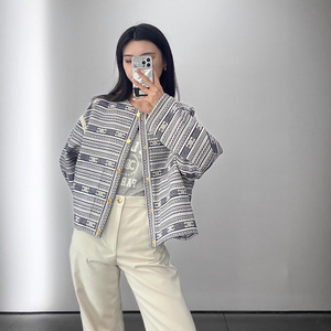 ce5ss春夏新款条纹徽标logo提花单排扣圆领夹克外套时尚百搭