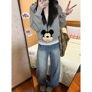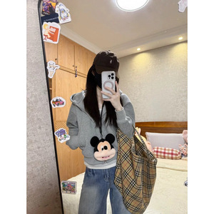 美式复古灰色双拉链短款连帽卫衣女春秋2025新款修身收腰开衫外套