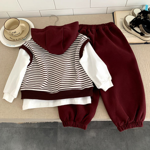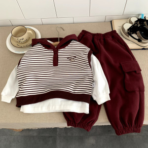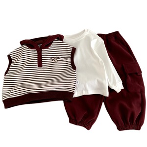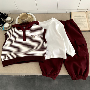 男童秋装套装2025新款洋气男宝宝秋季儿童休闲运动马甲卫衣三件套