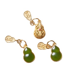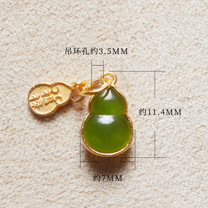 s925银镀金镶嵌天然和田玉碧玉diy配饰手串项链吊坠银饰配件葫芦