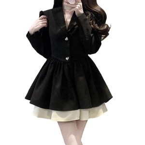 大码女装秋新款法式黑色气质西装连衣裙赫本风收腰公主蓬蓬小黑裙