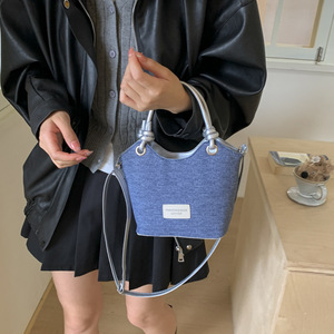 批发韩版轻奢手提水桶包女包2025秋新款洋气撞色单肩包通勤斜挎包
