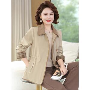妈妈秋装外套洋气2025新款时尚风衣大码宽松中老年春秋女夹克上衣