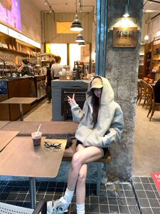韩系慵懒风撞色条纹连帽拉链卫衣外套女秋季小众百搭宽松显瘦上衣