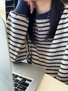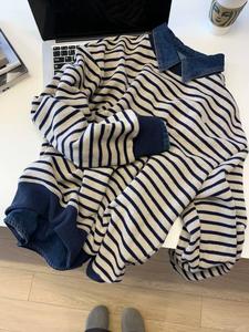 美式oversize条纹圆领卫衣女春秋2025新款爆款宽松独特超好看上衣